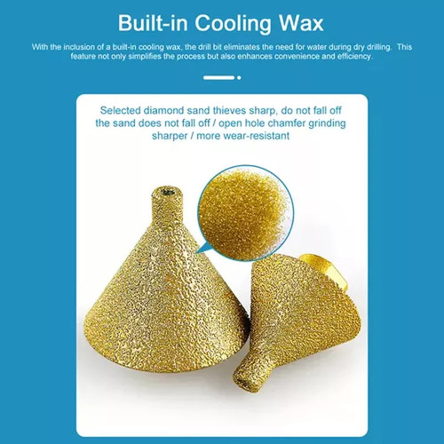 Cera de resfriamento embutida: Com a inclusão de uma cera de resfriamento embutida, a broca elimina a necessidade de água durante a perfuração a seco. Esse recurso não apenas simplifica o processo, mas também aumenta a conveniência e a eficiência.