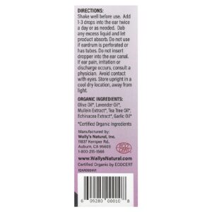 Wallys Natural Óleo em Gotas para o Ouvido Orgânicos 30 ml (1 fl oz) – Wally’s Natural Cuidados Pessoais Armário do Banheiro Cuidados com os Ouvidos e Protetores Auriculares.