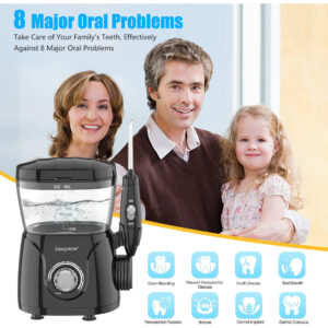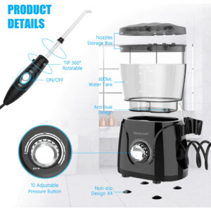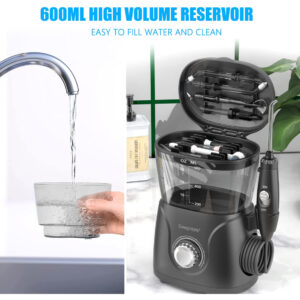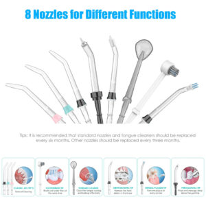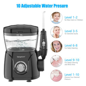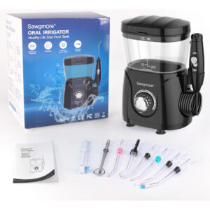 Por que escolher os flossers de água Sawgmore? A filosofia da Sawgmore é cuidar dos dentes e da saúde; os fios dentais aquáticos da Sawgmore podem remover com eficácia 99,9% dos restos de comida e resolver vários problemas bucais; a água pulsada de alta pressão ajuda a remover detritos presos entre os dentes. Limpe profundamente a boca. Tecnologia avançada e excelente design garantem boa qualidade. Escovar os dentes não é suficiente. Como todos sabemos, a limpeza tradicional da escova de dentes limpa apenas a superfície dos dentes. É por isso que você precisa escolher um fio dental que possa limpar profundamente áreas de difícil acesso. Dentes saudáveis são muito importantes para todos. Com 10 modos de pressão de água e 8 cabeças de bico profissionais, o irrigador oral profissional Sawgmore é perfeito para a limpeza diária de crianças e adultos. A grande capacidade (600 ml) é adequada para toda a família. Os irrigadores orais podem nos fazer sorrir com confiança. O pacote inclui: 1 x irrigador dental oral 3 x pontas normais de alta pressão 5 x outras dicas especiais de bico 1 x manual do usuário Como usar o fio dental de água: 1. Encha o depósito de água com água e feche a tampa para evitar que a água transborde. 2. Insira a ponta do bocal desejada na alça. 3. Gire o interruptor de pressão da água para selecionar a força apropriada. 4. Aponte a ponta em direção aos dentes, gengivas ou língua. 5. Pressione o interruptor do manípulo para limpar a boca. 6. Coloque a alça de volta na fenda e limpe a ponta na caixa superior. – [Limpeza profunda e fácil] O fio dental elétrico fornece pulsos de água de alta eficiência de 1250-1700 vezes/min e alta pressão de água de até 125 PSI, que podem remover até 99,9% dos restos de comida e bactérias entre os dentes, massagear eficazmente as gengivas e limpar os dentes, evitar o mau hálito e proteger a saúde bucal. Também é o limpador de dentes perfeito para quem usa aparelho ortodôntico, implante, coroa ou bolsa periodontal. – [ajuste do controle de pressão de nível] 1-2 níveis de baixa pressão são adequados para crianças, dentes sensíveis e iniciantes; 5-6 níveis de pressão média são adequados para a maioria das pessoas; 7 a 10 níveis de alta pressão são adequados para adultos e usuários experientes. Todos podem escolher o nível adequado de acordo com o conforto. Fluxo de água pulsado de alta frequência: 1250-1700 vezes/min. Há uma função de interruptor na alça, apenas um leve empurrão, o fluxo de água será interrompido imediatamente, de forma conveniente e rápida. – [Tanque de água grande de 600 ml e design à prova de vazamentos]: O irrigador oral dental de água com mangueira de entrada flexível de 1 metro tem capacidade de 600 ml, que pode limpar toda a boca com um único armazenamento de água. O design à prova de vazamentos garantirá que você não vaze líquido ao usá-lo. Caixa independente de armazenamento a jato, você pode escolher e colocar o JET necessário a qualquer momento, o que é seguro e higiênico e evita a poluição de poeira e mosquitos. – [8 jatos para várias necessidades de limpeza] O fio dental elétrico vem com 3 pontas gerais de alta pressão, 5 outras pontas de jato de água para fins especiais (1 ponta de escova de dentes, 1 ponta periodontal, 1 ponta de placa, 1 ponta ortodôntica, 1 ponta de limpeza de língua). Perfeito para qualquer pessoa, como coroas, implantes, ortodontia, placa bacteriana, doenças gengivais, mau hálito e cáries. – [Usando conselhos e serviços] O uso contínuo do fio dental irrigador oral pode tornar seus dentes e gengivas mais saudáveis, remover 99% da placa, promover a circulação sanguínea nas gengivas, prevenir cáries, sangramento gengival, inchaço e sensibilidade à dor. Além disso, nosso limpador de dentes com água possui certificações FDA, FCC, CE, RoHS e outras. Se você encontrar algum problema durante o uso, sinta-se à vontade para entrar em contato conosco, forneceremos uma solução satisfatória.
