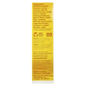 Óleo de semente de Sesamum indicum (gergelim), água, lanolina, glicerina, álcool, cera de abelha hidrolisada, monoleato de glicerila, caulim, sílica, extrato da flor de Calendula officinalis, fragrância*, limoneno*, linalool*, geraniol*, citral*.