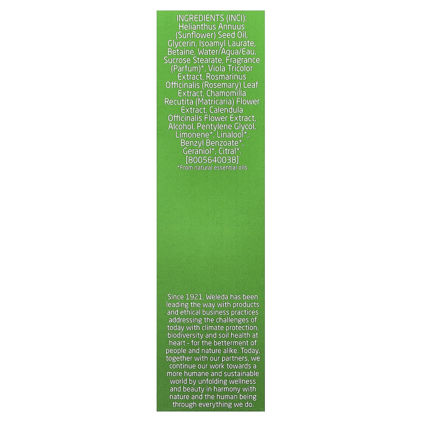 Óleo da semente de Helianthus annuus (girassol), glicerina, laurato de isoamila, betaína, água, sucrose stearate, fragrância*, extrato de Viola tricolor, extrato da folha de Rosmarinus officinalis (alecrim), extrato da flor de Chamomilla recutita (matricária), extrato da flor de Calendula officinalis, álcool, pentilenoglicol, limoneno*, linalool*, benzoato de benzila*, geraniol*, citral*.