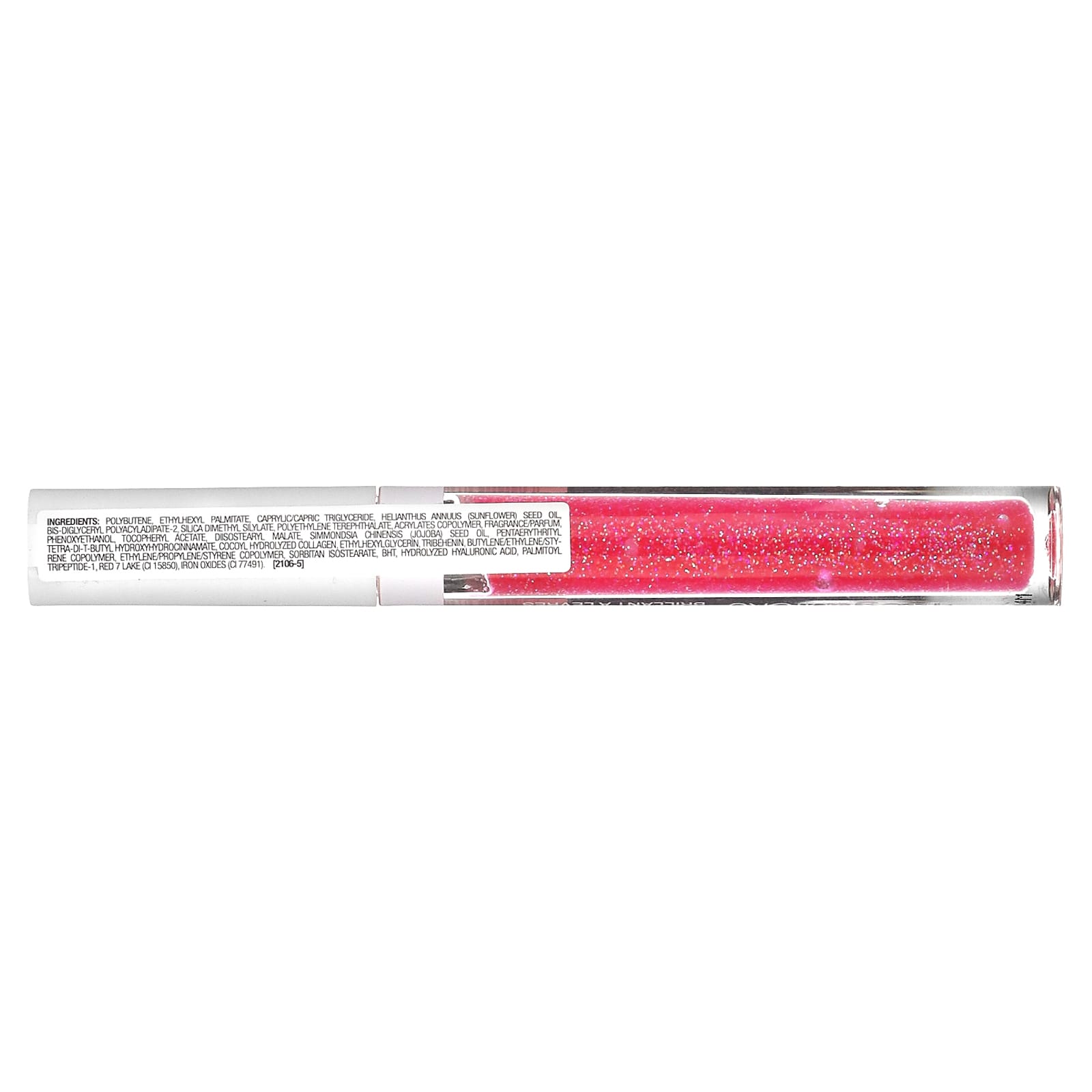 Polybutene, ethylhexyl palmitate, caprylic/capric triglyceride, óleo da semente de Helianthus annuus (girassol), bis-diglyceryl polyacyladipate-2, silica dimethyl silylate, tereftalato de polietileno, acrylates copolymer, fragrância/perfume, fenoxietanol, acetato de tocoferol, diisostearyl malate, óleo da semente de Simmondsia chinensis (jojoba), pentaerythrityl tetra-di-t-butyl hydroxyhydrocinnamate, colágeno hidrolisado de coco, ethylhexylglycerin, tribohenin, butylene/ethylene/styrene copolymer, ethylene/propylene/styrene copolymer, isoestearato de sorbitana, bht, ácido hialurônico hidrolisado, palmitoyl tripeptide-1, red 7 lake (CI 15850), óxidos de ferro (CI 77491).