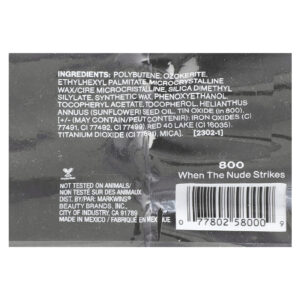 Etil-hexanoato de cetearila, isononanoato de isononilo, ésteres do ácido dipentaeritritil-hexa-c5-9, polietileno, coglicerídeos hidrogenados, ozocerite, polímero reticulado de metacrilato de metila, talco, óleo de coco hidrogenado, silica, fitoesterol de macadâmia, fenoxietanol, ácido sórbico, etil-hexanoato de cetila, cera sintética, acetato de tocoferol, silica dimetil silato, tocoferol, óxido de estanho, óxido de titânio/ci 77891, mica, óxidos de ferro/ci 77491, ci 77492, ci 77499.