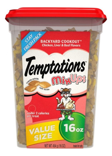 Recompense seu gato com deliciosos petiscos para brincar, 100% nutricionalmente completos para a manutenção de gatos adultos e que ajudam a controlar o tártaro. Com uma mistura tentadora de sabores inspirados em churrascos, como frango, carne bovina e fígado, as guloseimas temptations MixUps para gatos são uma ótima recompensa para brincar. Elas têm o tamanho perfeito para brinquedos para gatos, então experimente colocar algumas dentro de um dispensador de guloseimas e veja seu gato correr atrás e espancar. Além disso, com apenas 2 baixas calorias por guloseima, seu amigo felino pode saborear o exterior crocante e o centro macio a qualquer momento. A guloseima #1 para gatos da América* é a maneira perfeita de mostrar ao seu amigo felino o quanto você se importa. (* Com base nos dados de vendas da Nielsen de 2020) Contém uma (1) banheira de 16 onças de TEMPTATIONS MixUps Cat Treats Backyard Cookout, incluindo três dos sabores favoritos do seu gato: sabor de frango, sabor de fígado e sabor de carne bovina. Sem sabores artificiais para um sabor incrível que seu gato vai adorar. A casca externa crocante ajuda a controlar o tártaro e a apoiar a saúde bucal. Com menos de duas calorias por guloseima, essas pequenas guloseimas são o lanche ou a recompensa perfeita que pode ser dada diariamente. Guloseimas saudáveis 100% nutricionalmente completas e balanceadas para a manutenção de gatos adultos. Trate-os repetidamente com esta banheira econômica que pode ser fechada novamente: perfeita para manter as patas de gato afastadas quando você não está assistindo. Formulado pela AAFCO.