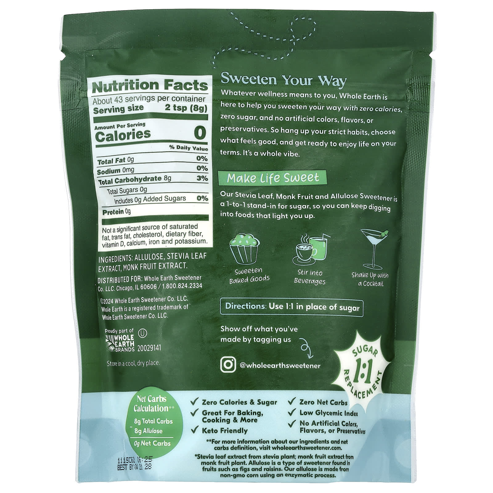 Whole Earth Folha de Estévia Fruta-dos-Monges e Allulose 340 g (12 oz)