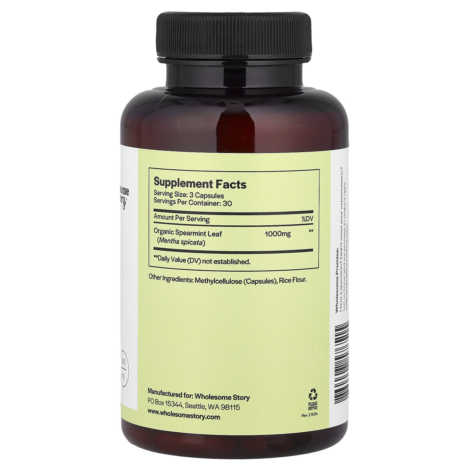 Wholesome Story Hortelã 1.000 mg 90 Cápsulas Vegetarianas (333 mg por Cápsula) – Wholesome Story Suplementos Ervas.