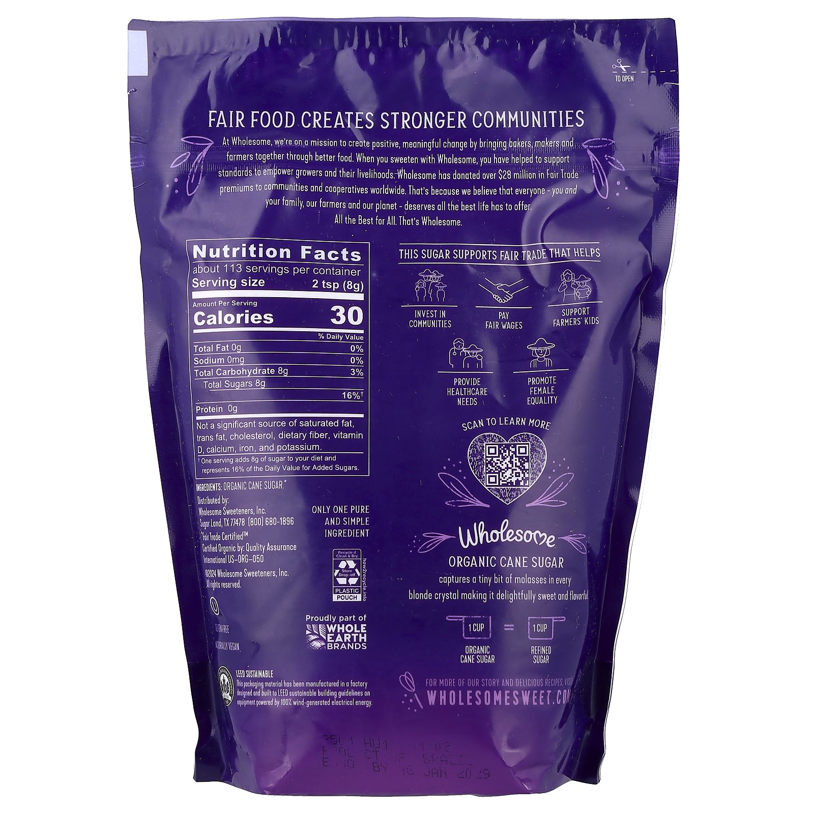 Wholesome Sweeteners Açúcar de Cana Orgânico 907 g (2 lb) – Wholesome Alimentos Mel e adoçantes Açúcar.