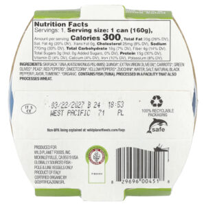 Sabor Gourmet: Prepare-se para desfrutar de nossa salada de inspiração culinária, com atum gaiado selvagem e uma mistura de dar água na boca de quinoa orgânica, cenoura, azeitonas verdes, ervilhas, pimentão, milho doce, abobrinha e especiarias em óleo de oliva extravirgem orgânico.
