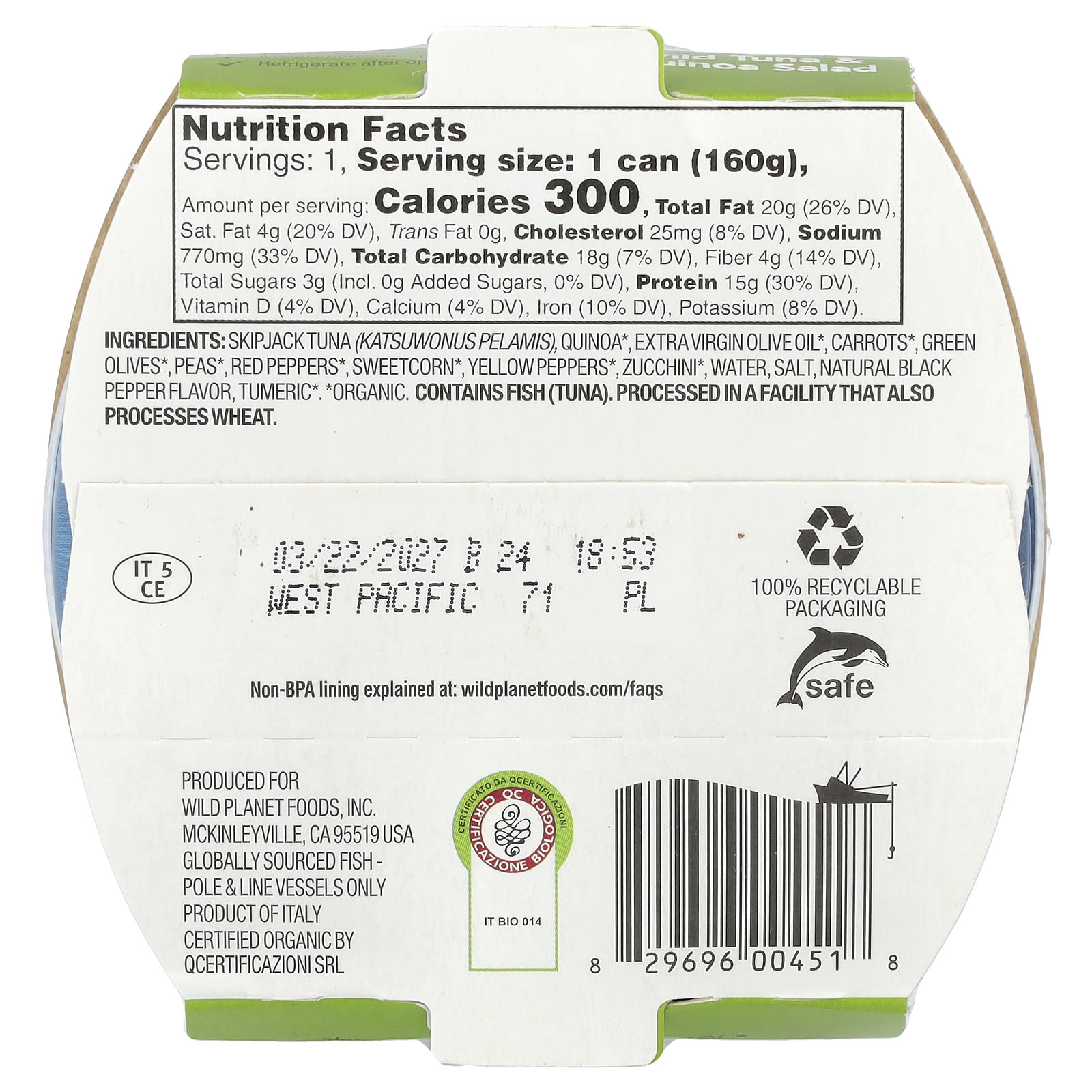 Wild Planet Salada de Atum Selvagem e Quinoa 160 g (56 oz) – Wild Planet Alimentos Alimentos embalados e prontos Frutos do Mar Atum Refeições Prontas.