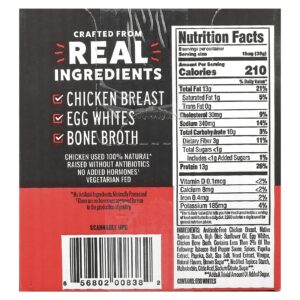 Peito de frango sem antibióticos, amido de tapioca nativa, óleo de girassol com alto teor oleico, claras de ovo, caldo de ossos de galinha. contém menos de 2% do seguinte: molho de pimenta vermelha Tabasco, especiarias, extrato de páprica, páprica, sal, sal marinho, extrato de levedura, vinagre, sabores naturais, açúcar mascavo ** amido de tapioca modificado, maltodextrina, ácido cítrico, citrato de sódio, açúcar**.
