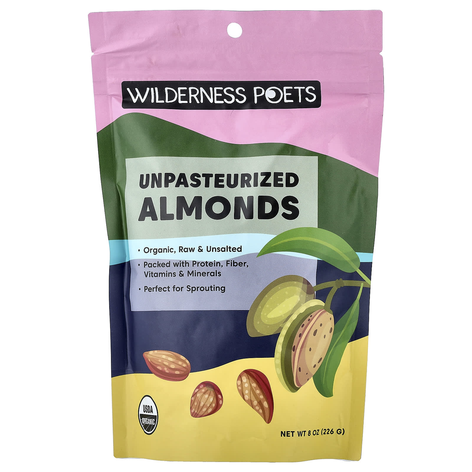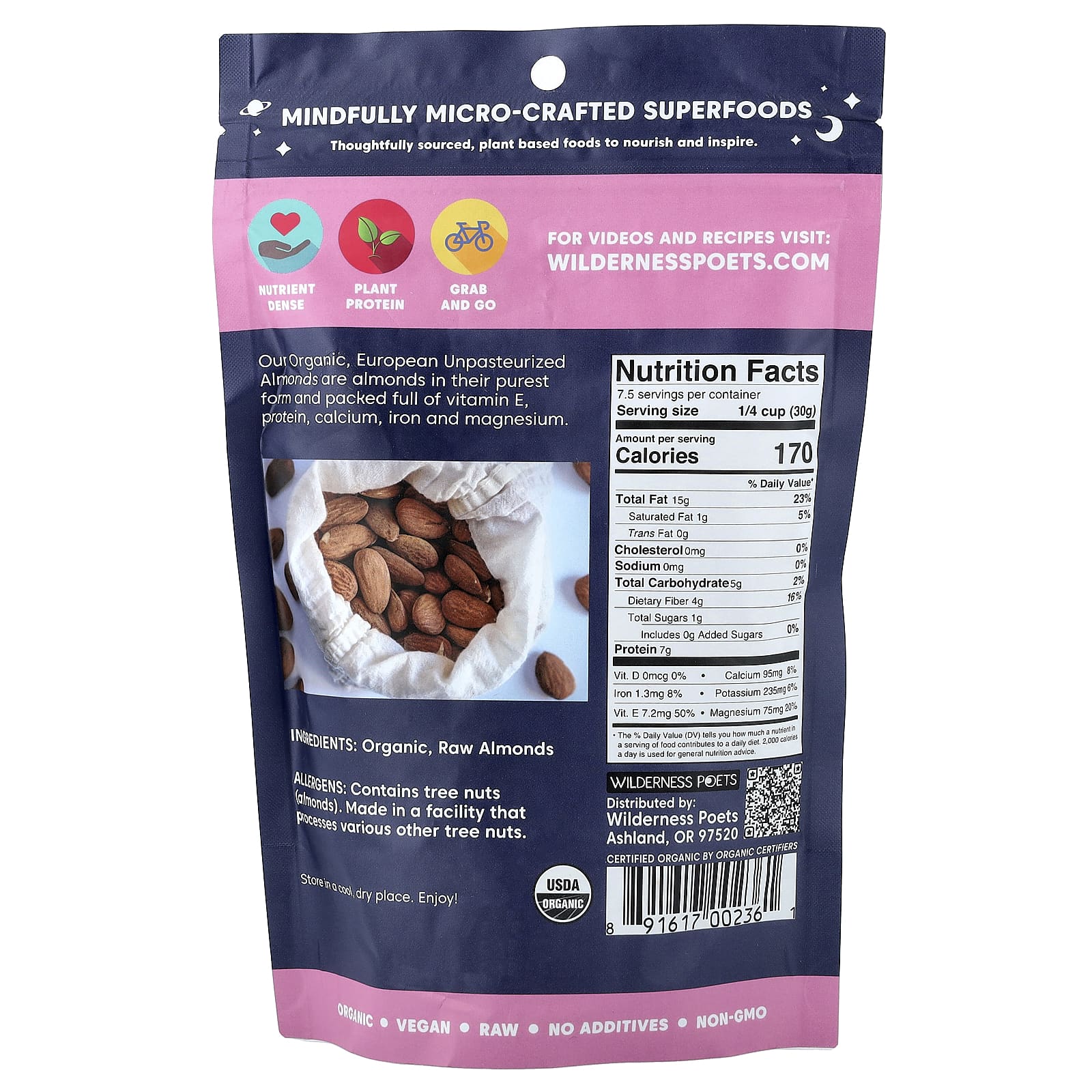 Wilderness Poets Amêndoas Orgânicas Não Pasteurizadas Sem Sal 226 g (8 oz) – Wilderness Poets Alimentos Petiscos e lanches Castanhas e sementes Amêndoas.