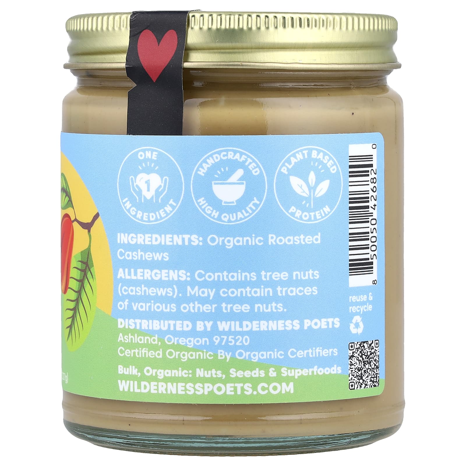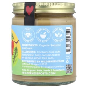 Wilderness Poets Manteiga de Castanha-de-Caju Orgânica Torrada 227 g (8 oz) – Wilderness Poets Alimentos Condimentos, molhos e pastas Manteigas e Pastas de Nozes Pasta de castanha de caju.