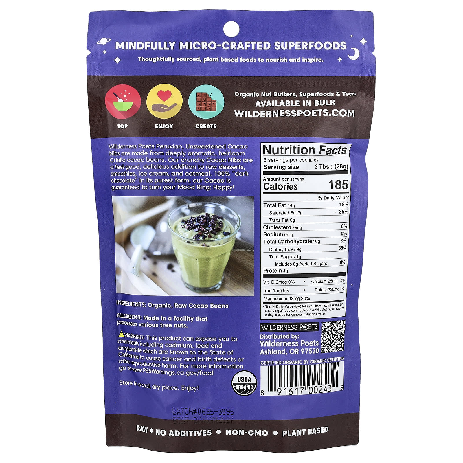 Our crunchy Cacao Nibs are a feel-good, delicious addition to raw desserts, smoothies, ice cream, and oatmeal.