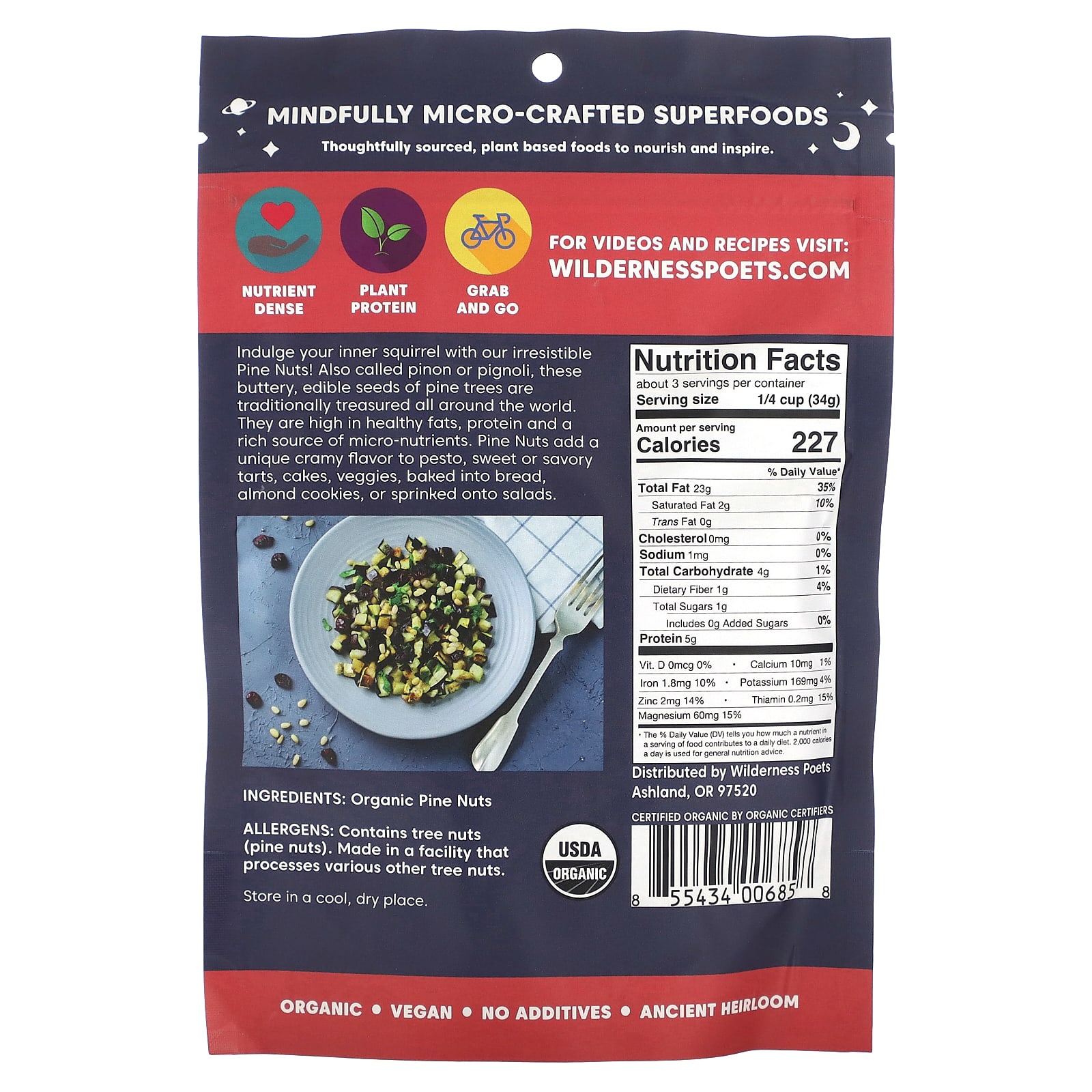 Wilderness Poets Pinhões Orgânicos 99 g (35 oz) – Wilderness Poets Alimentos Petiscos e lanches Castanhas e sementes.