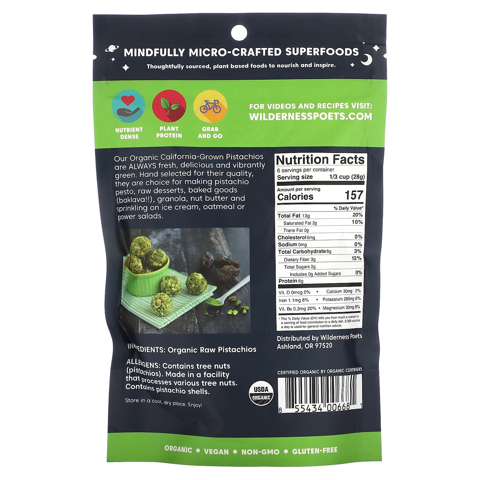 Wilderness Poets Pistaches Orgânicos da Califórnia Sem Sal 170 g (6 oz) – Wilderness Poets Alimentos Petiscos e lanches Castanhas e sementes Pistaches.