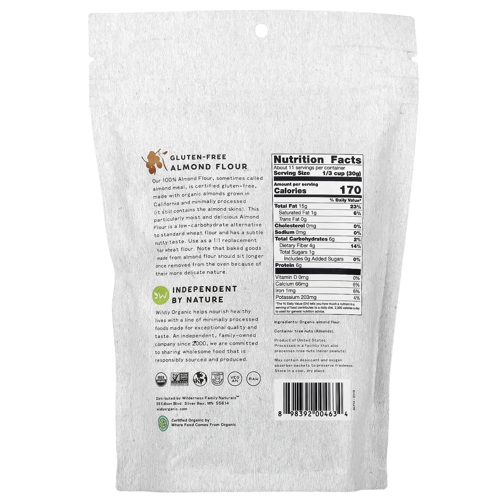 Wildly Organic Farinha de Amêndoa sem Glúten 340 g (12 oz) – Wildly Organic Alimentos Fermentos, farinhas e misturas Farinha de amêndoa fina e grossa.