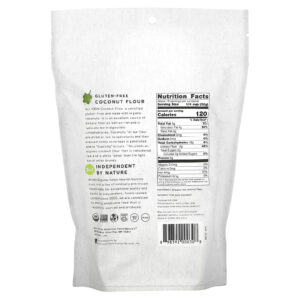 Nossa Farinha de Coco 100% é certificada como livre de glúten e feita com cocos orgânicos. É uma excelente fonte de fibra alimentar, bem como de ferro, e tem naturalmente baixo teor de carboidratos digeríveis. Os cocos para a nossa farinha são secos a baixas temperaturas e, em seguida, prensados lentamente para que nenhum calor seja gerado e não “brindar” ocorre. Isso produz uma farinha de coco orgânica que é considerada crua e é branca, em vez do bronzeado claro de outras marcas.