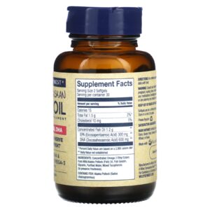 • Cada dose contém 300 mg de EPA, 600 mg de DHA para um total de 900 mg de EPA + DHA de Ômega-3