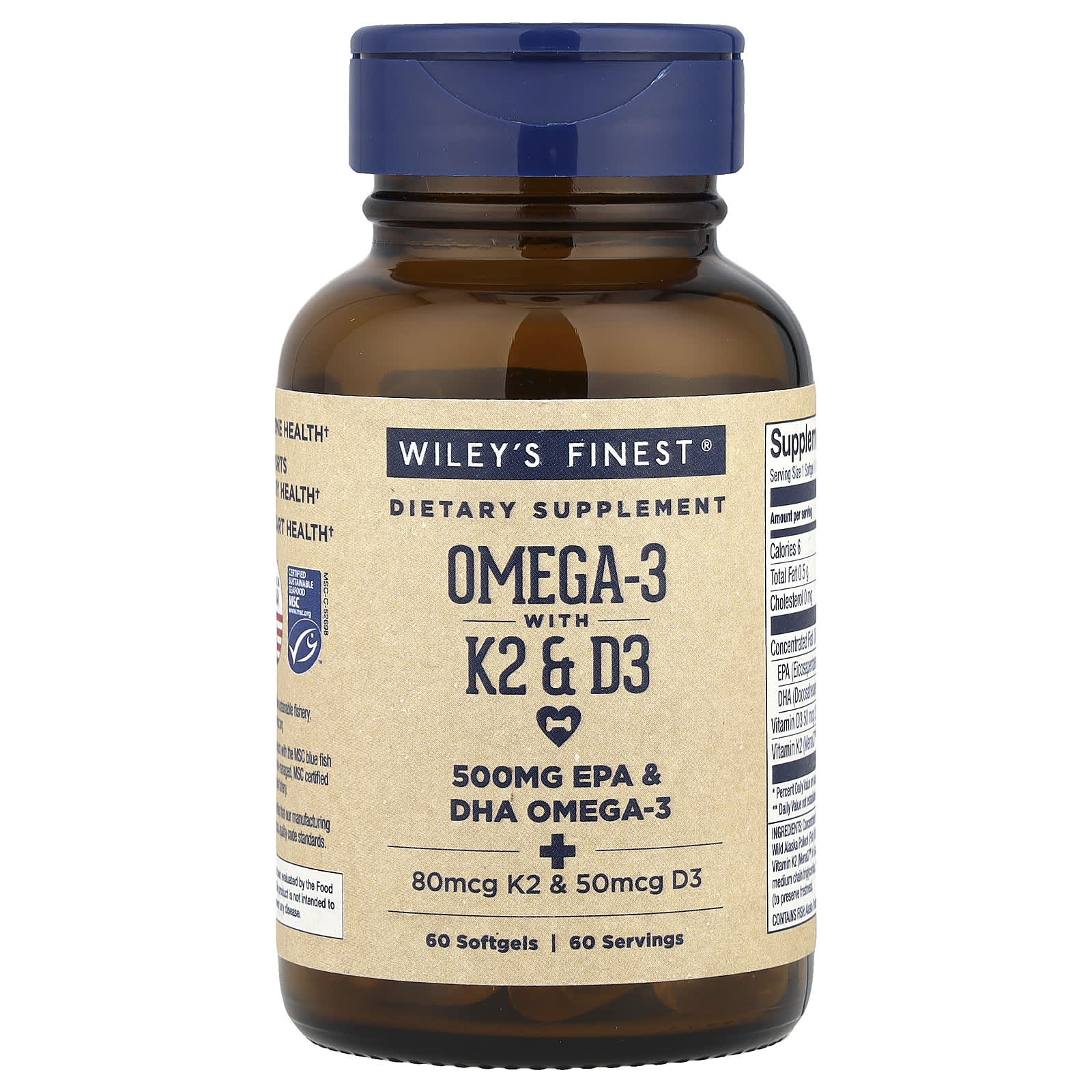 Wileys Finest Ômega-3 com K2 e D3 60 Cápsulas Softgel – Wiley’s Finest Suplementos Ômegas e Óleos de Peixe (EPA/DHA) Ômega 3 e Óleo de Peixe Vitaminas Vitamina D3 e K2.