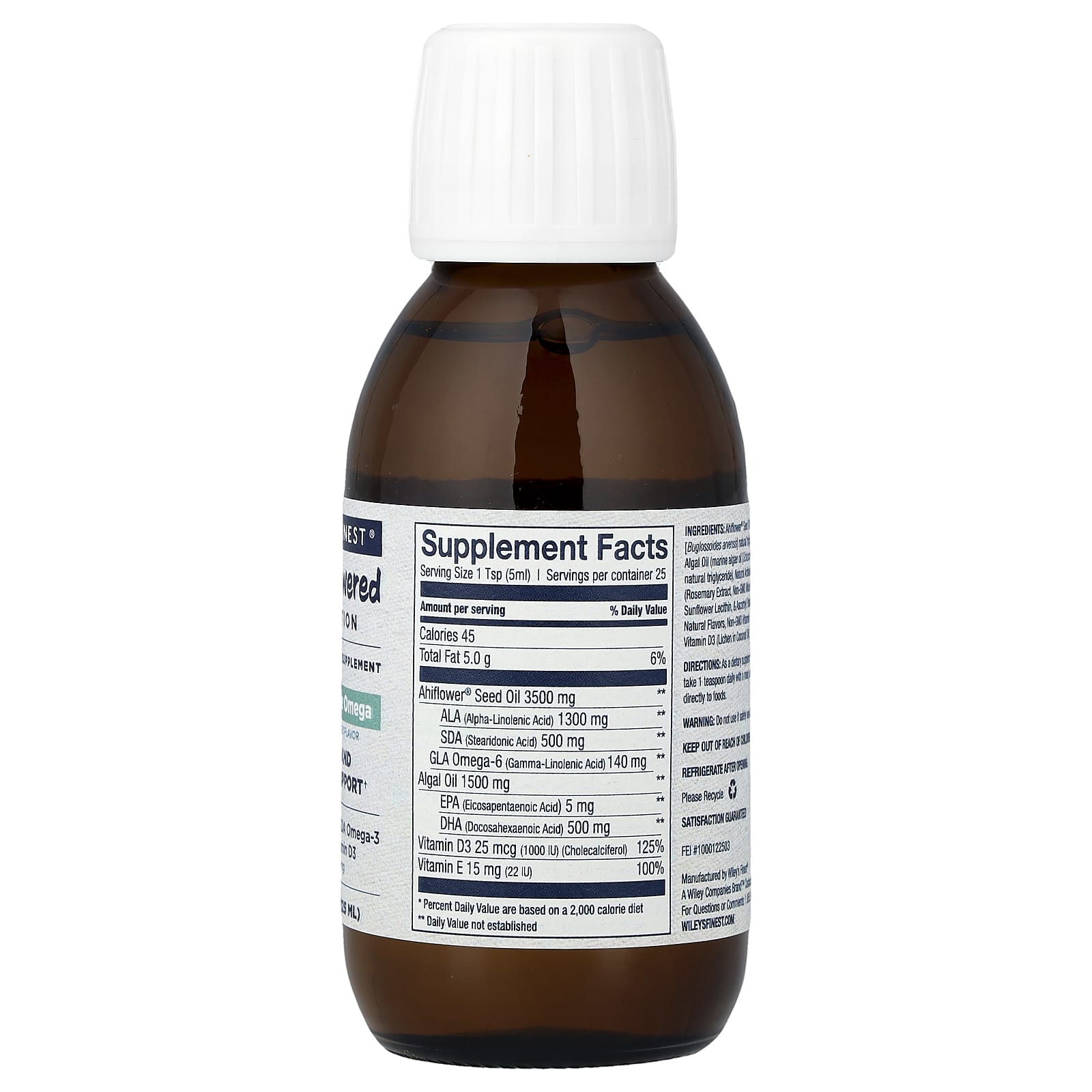 O Ômega Líquido CatchFree combina mais de 2.300 mg de Ômega-3 sem peixe, incluindo 500 mg de Ômega-3 DHA, com 25 mcg de Vitamina D3 para nutrir o coração e o cérebro e contribuir para a saúde e o bem-estar geral.