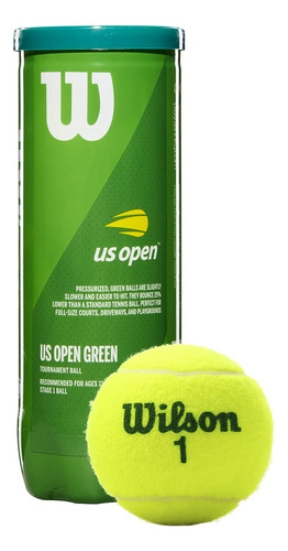 WILSON Youth Tennis Ball – US Open Green Tournament, Single Can (3 Balls) – New dot and number branded ball – Pressurized green felt balls are slightly slower and easier to hit – Balls bounce 25% lower than a standard tennis ball – Perfect for full size courts, driveways, and playgrounds – USTA and ITF approved