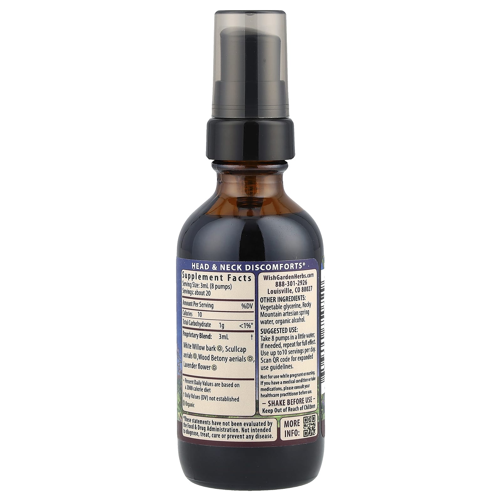 WishGarden Herbs Conforto Craniano com Casca de Salgueiro e Lavanda 59 ml (2 fl oz) – WishGarden Herbs Suplementos Ervas Fórmulas de Ervas.