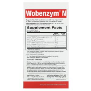 Apresentada pela primeira vez na Alemanha como um produto farmacêutico há mais de 40 anos, a Wobenzym® N foi atualizada, mas ainda apresenta a combinação sinérgica testada pelo tempo à base de enzimas vegetais, enzimas pancreáticas e antioxidantes. Essas poderosas, porém delicadas, enzimas são protegidas por um revestimento entérico de base vegetal, que garante uma ótima absorção e utilização na corrente sanguínea.