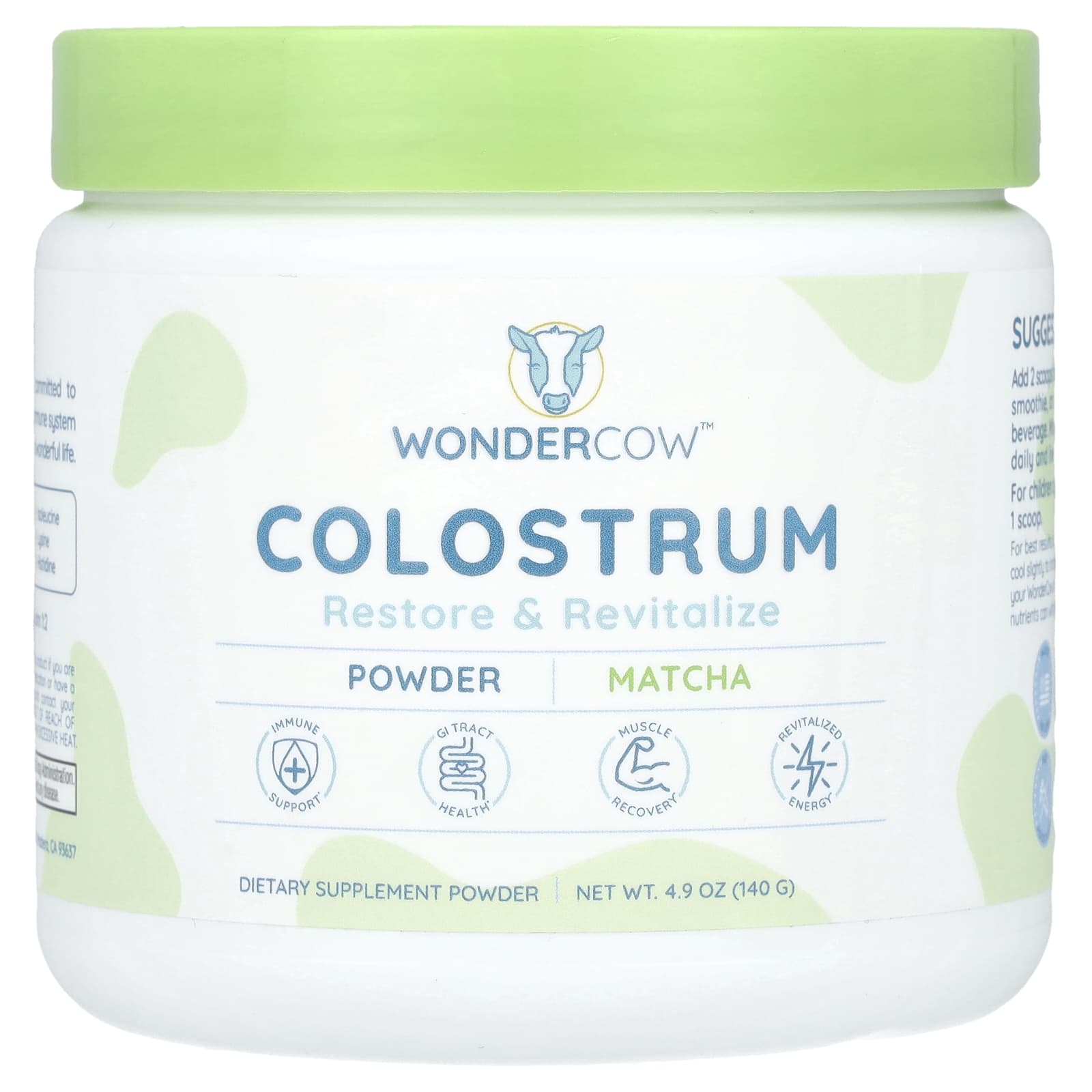 Wondercow Colostro em Pó Matcha 140 g (49 oz) – Wondercow Suplementos Saúde Intestinal Colostrum.