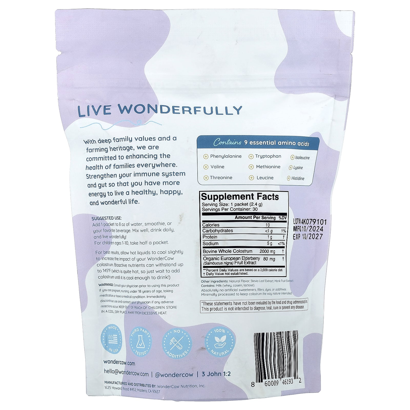 Wondercow Colostro em Pó Sabugueiro 30 Embalagens 24 g (008 oz) Cada – Wondercow Suplementos Saúde Intestinal Colostrum.