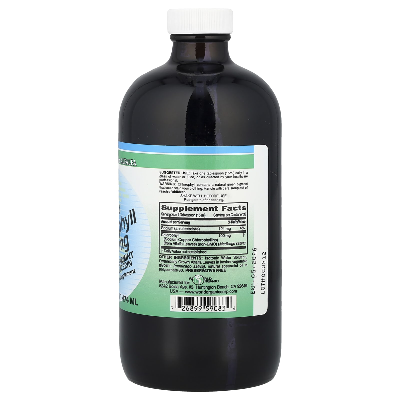 World Organic Clorofila Líquida com Hortelã e Glicerina 100 mg 474 ml (16 fl oz) – World Organic Suplementos Superalimentos Clorofila.