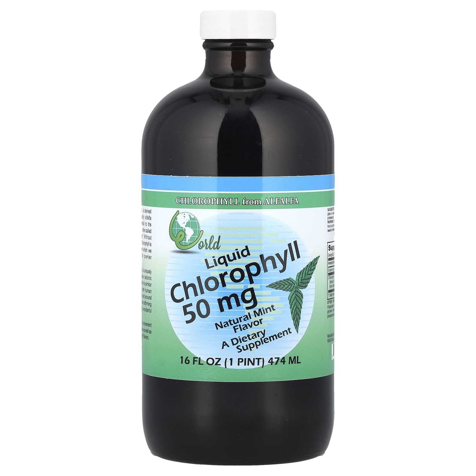 World Organic Clorofila Líquida Sabor Natural de Menta 50 mg 16 fl oz (474 ml) – World Organic Suplementos Superalimentos Clorofila.