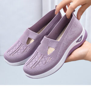Este é um tênis feminino elegante e confortável com um design simples, mas esportivo. A parte superior é feita de material de malha respirável de alta qualidade para manter seus pés secos e confortáveis. O corpo do sapato é feito de materiais leves, permitindo que você se sinta mais livre e flexível ao se mover.
