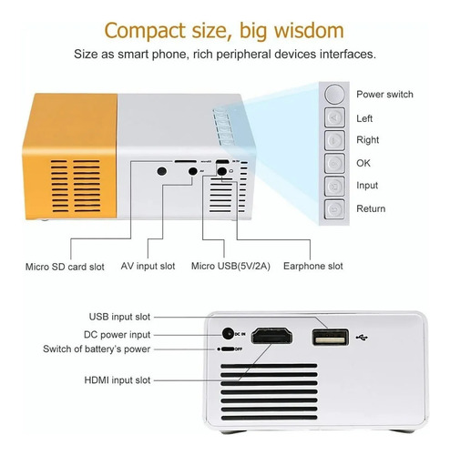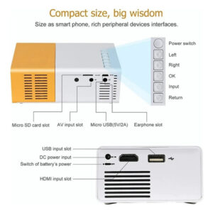 Mini projetor. LED, com altominusfalante embutido e controle remoto, fácil de manusear.