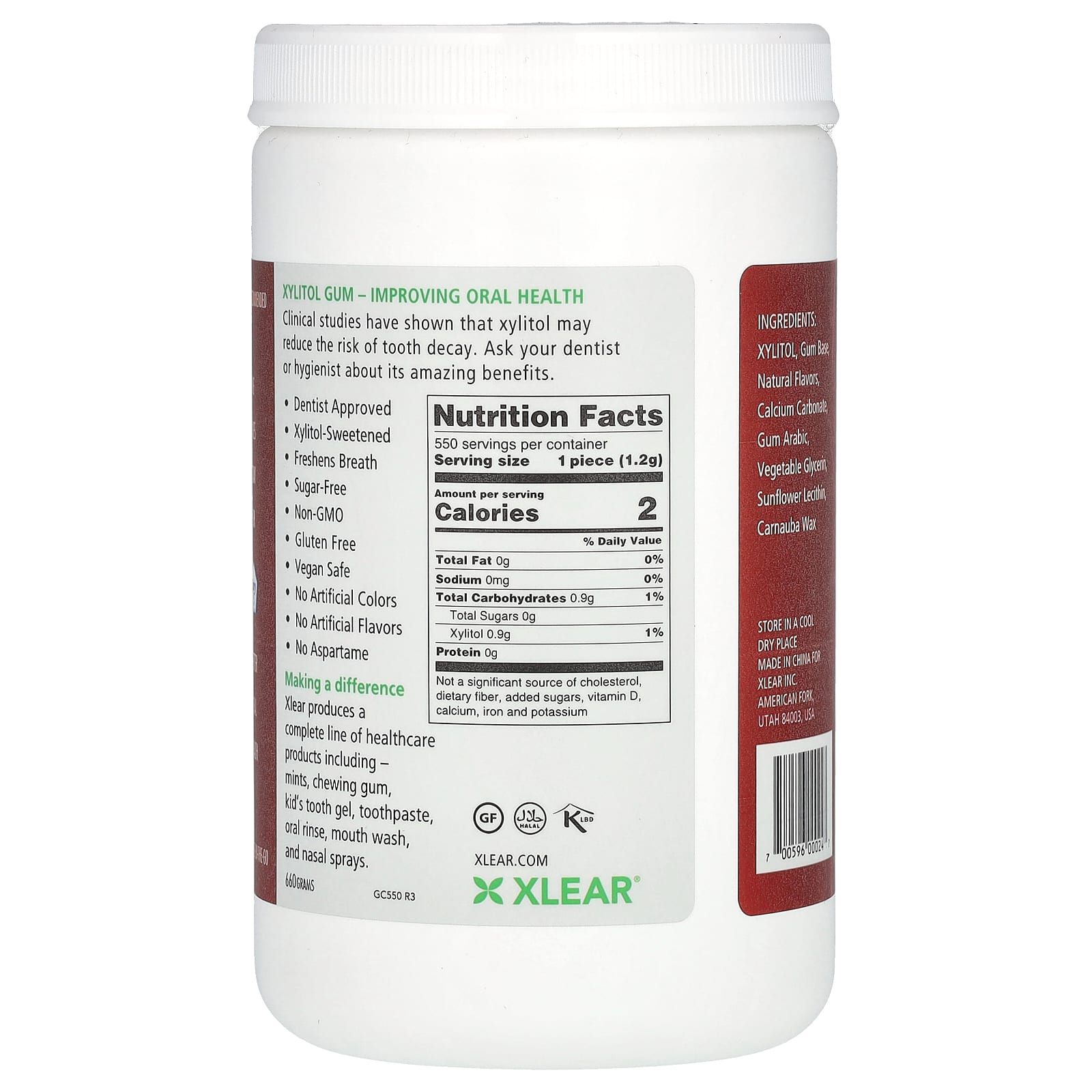 Xlear Spry Goma Canela Natural Sem Açúcar 550 Unidades (660 g)