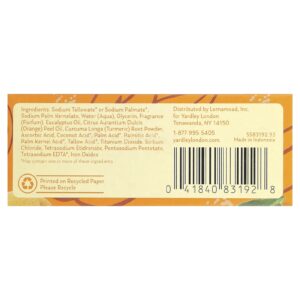 O sabonete em barra de Vitamina C com Cúrcuma e Casca de Laranja da Yardley ajuda a clarear, tonificar e suavizar a pele com uma fragrância revigorante de cítricos cintilantes e gengibre picante.