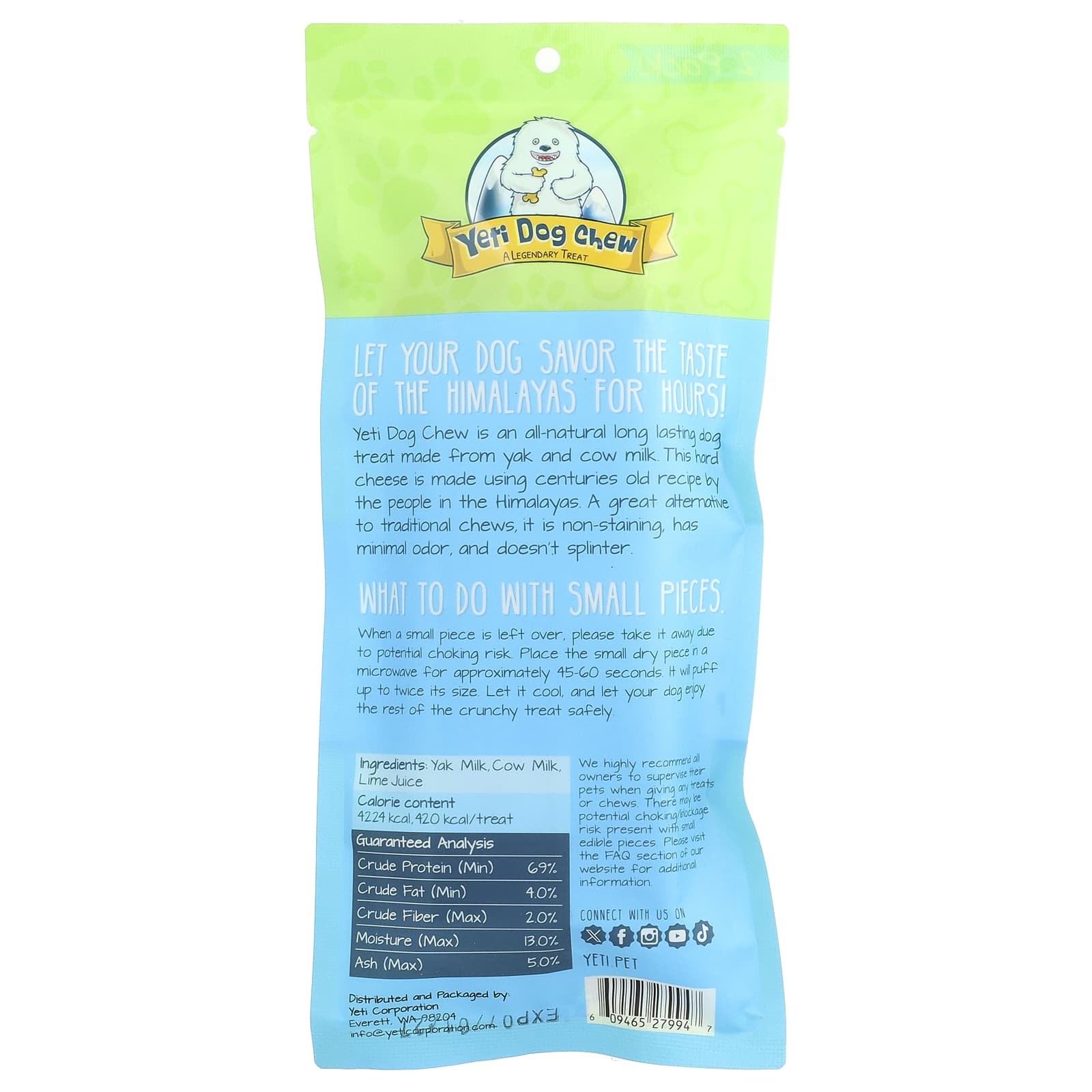 A Yeti para Cães é uma guloseima natural e duradoura para cães feita com leite de vaia e vaca. Este queijo duro é feito usando receitas centenárias pelas pessoas do Himalaia. Uma ótima alternativa às gomas mastigáveis tradicionais, pois não mancha, tem o mínimo de odor e não estilhaça.