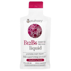 Youtheory B12 B6 Líquido Para Qualquer Lugar Framboesa 12 Sachês 30 ml (1 fl oz) Cada – Youtheory Suplementos Vitaminas Vitamina B Vitamina B12 (Cobalamina).