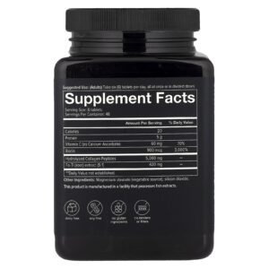 | Os valores de aminoácidos listados abaixo representam médias típicas de colágeno hidrolisado comestível e são apenas para fins informativos. Por dose de 6 comprimidos: | |