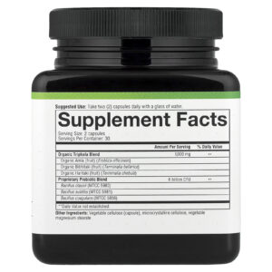 | Mistura de Triphala Orgânica Amla (fruta) Orgânica (Emblica officinalis) Bibhitaki orgânica (fruta) (Terminalia bellerica) Haritaki Orgânico (fruta) (Terminalia chebula) |