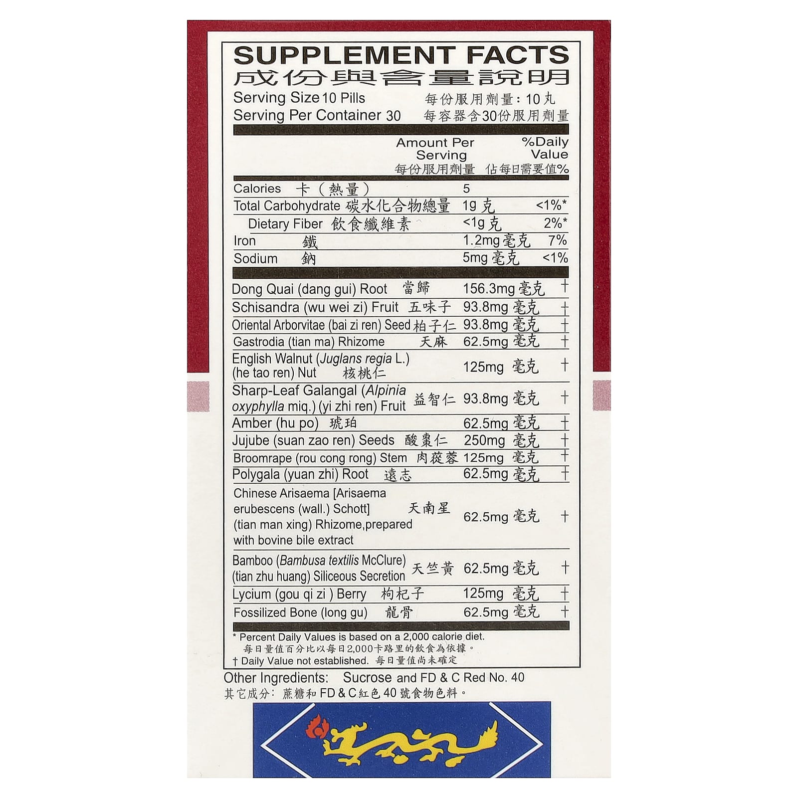 | Semente de Arborvitae Oriental (Bai zi ren) | 93,8 mg | † |