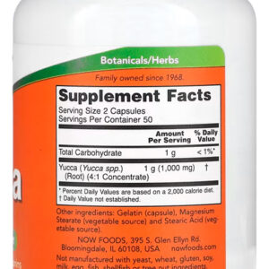 Yucca 500mg Now Foods 100 Cápsulas Importado