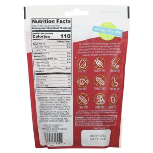 Açúcar de cana orgânico, xarope de arroz orgânico, farinha de arroz orgânica, amido de milho orgânico, óleo de palma orgânica, ácido cítrico, sabores naturais, citrato de sódio, extrato de alcaçuz, colorido com concentrados orgânicos (cenoura, maçã, groselha negra), cera de carnaúba orgânica, óleo de girassol orgânico, romã orgânica e suco concentrado de cereja, sal.