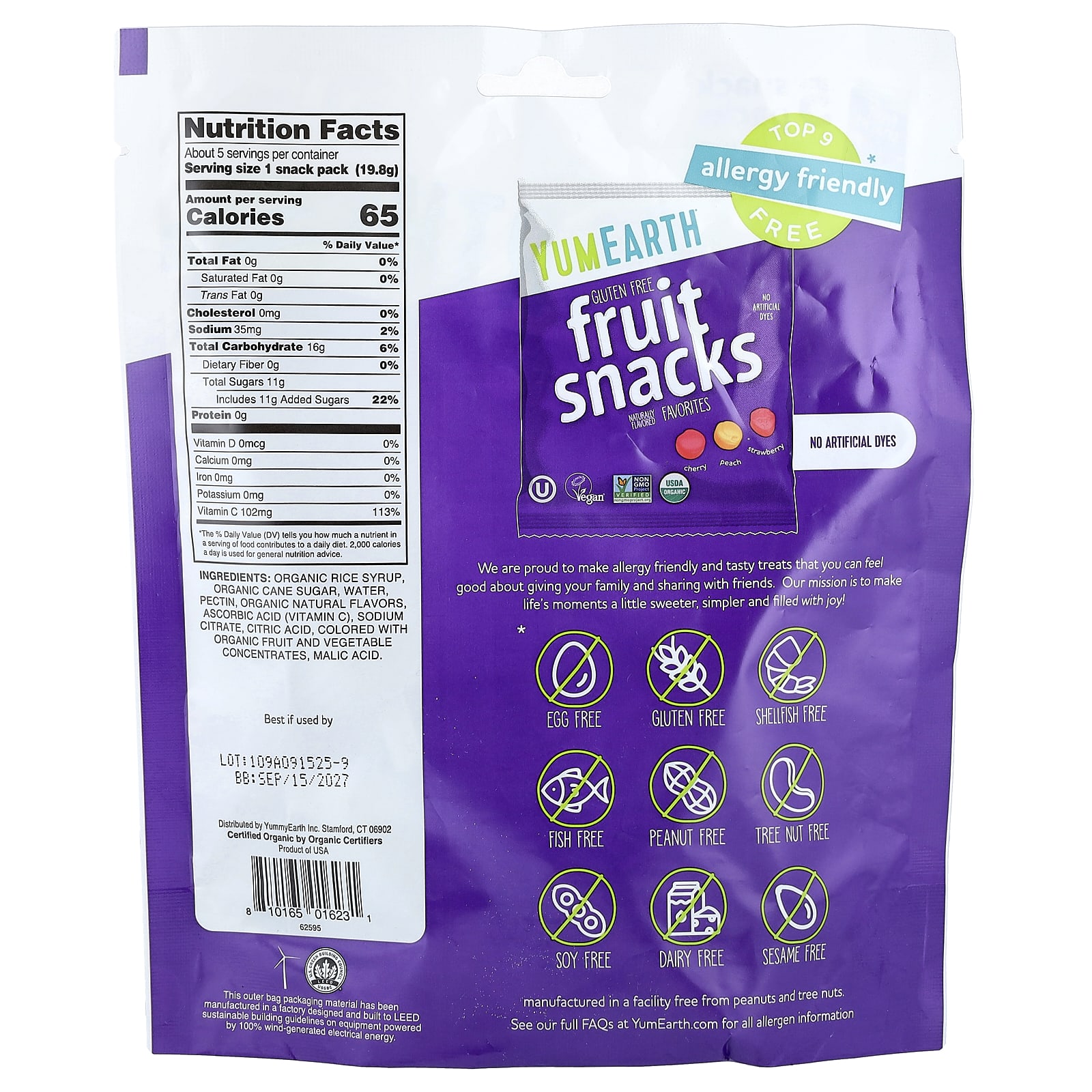 YumEarth Lanches de Frutas Orgânicas 5 Pacotes 198 g (07 oz) Cada – YumEarth Alimentos Petiscos e lanches Snacks de frutas e vegetais Chocolate e doces Doces Gomas e mastigáveis.
