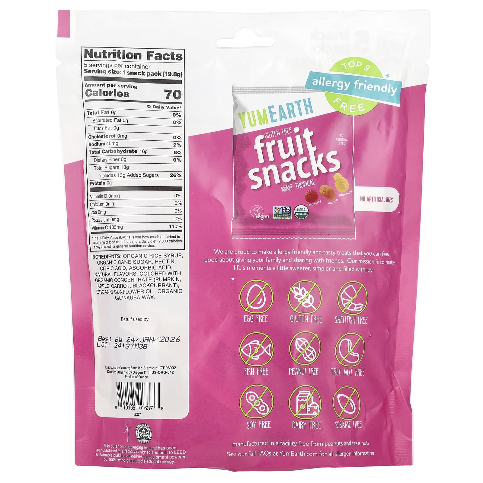 YumEarth Lanches de Frutas Sem Glúten Frutas Tropicais 5 Pacotes 198 g (07 oz) Cada – YumEarth Alimentos Petiscos e lanches Snacks de frutas e vegetais Chocolate e doces Doces Gomas e mastigáveis.