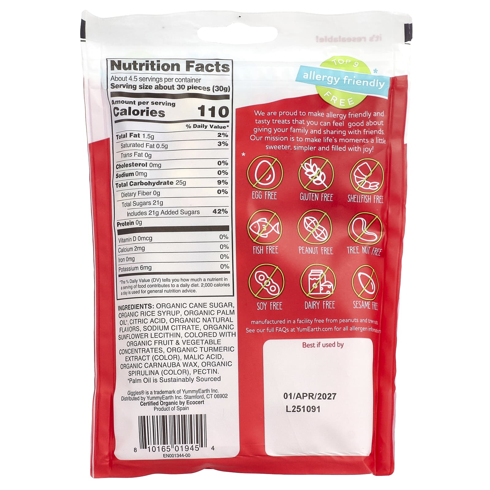 YumEarth Organic Giggles 142 g (5 oz) – YumEarth Alimentos Chocolate e doces Doces Gomas e mastigáveis.