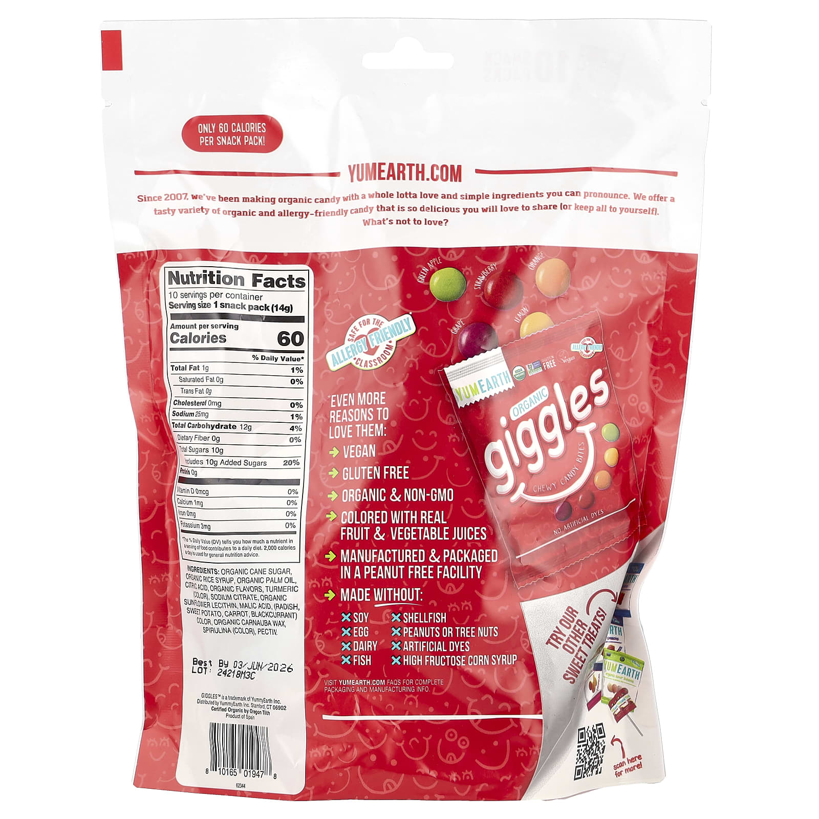 YumEarth Organic Giggles Gomas Mastigáveis 10 Pacotes de Lanche 14 g (05 oz) Cada – YumEarth Alimentos Chocolate e doces Doces Gomas e mastigáveis.