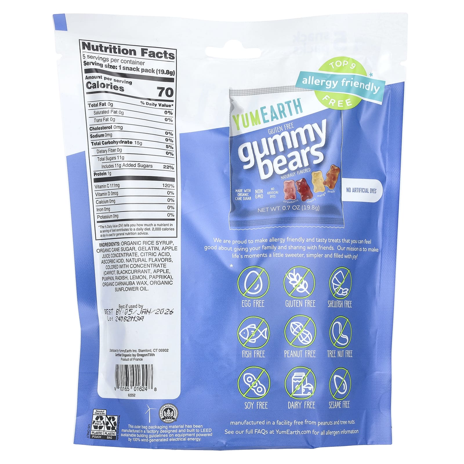 YumEarth Ursinhos em Goma sem Glúten Morango Cereja Manga Pêssego 5 Pacotes para Lanche 198 g (07 oz) Cada – YumEarth Alimentos Chocolate e doces Doces Gomas e mastigáveis.