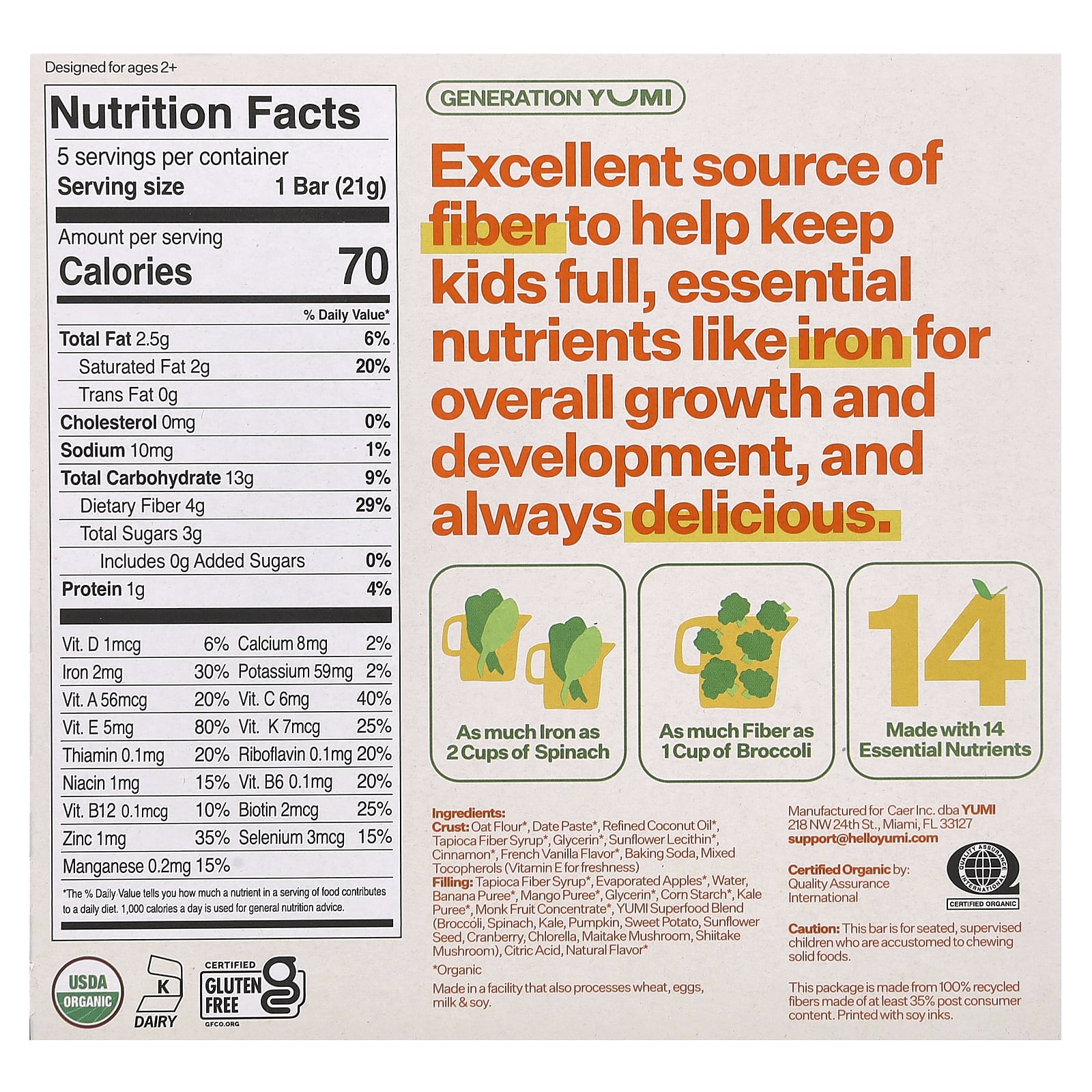 Excelente fonte de fibras para ajudar a manter as crianças saciadas. Nutrientes essenciais, como o ferro, para o crescimento e o desenvolvimento geral, e sempre deliciosos.