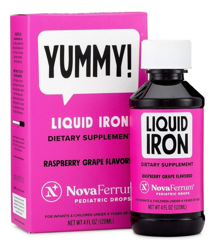 Yummy Pediatric Drops Liquid Iron da NovaFerrum é especialmente formulado para bebês e crianças para ajudar a prevenir a anemia por deficiência de ferro. Este delicioso suplemento de ferro líquido não contém sabores ou cores artificiais e foi projetado para facilitar a absorção. Com um sabor agradável e uma fórmula adequada para crianças, é uma excelente escolha para pais que buscam aumentar a ingestão de ferro de seus filhos. Repleto de nutrientes essenciais, é uma solução conveniente para apoiar o crescimento e o desenvolvimento saudáveis.