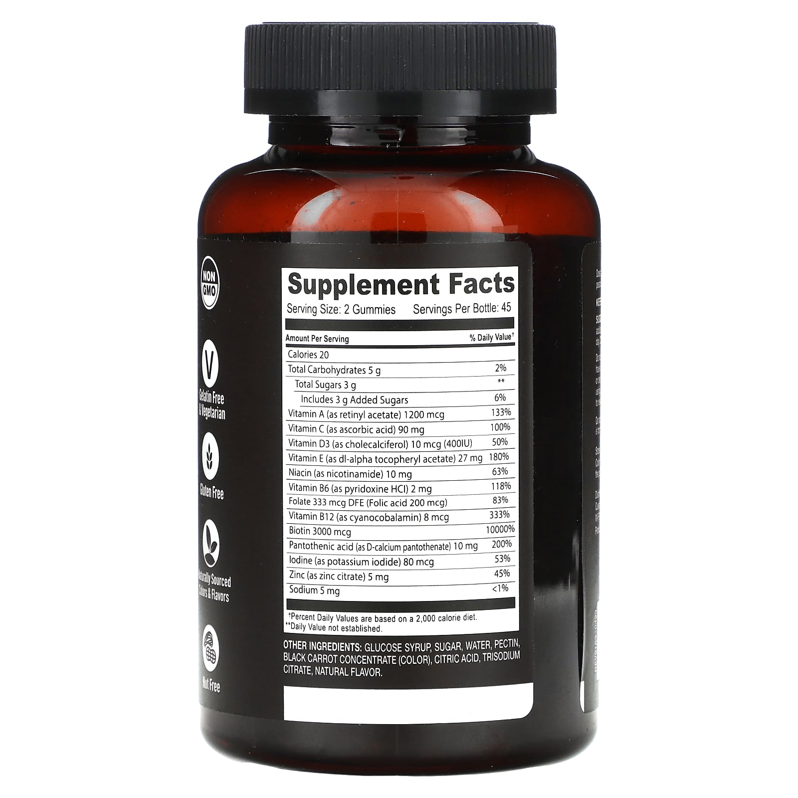 Xarope de glicose, açúcar, água, pectina, concentrado de cenoura preta (corante), ácido cítrico, citrato trissódico, sabor natural.